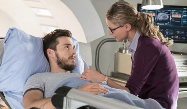 Inside the shop they quickly realize that one of the stasis tubes is empty and then they are shot at by whoever that was. However, before any one get hurt Kara realizes that it’s Mon-El. He looks as startled as she does but the two hug. Back at the DEO they run tests and discover that he can now breathe Earth’s air. However, Mon-El isn’t in a good place to answer questions, though he does say that the others on the ship are like him. As the room clears, Mon-El tells Kara that he had tried to send her a message to let him know he’s okay.
