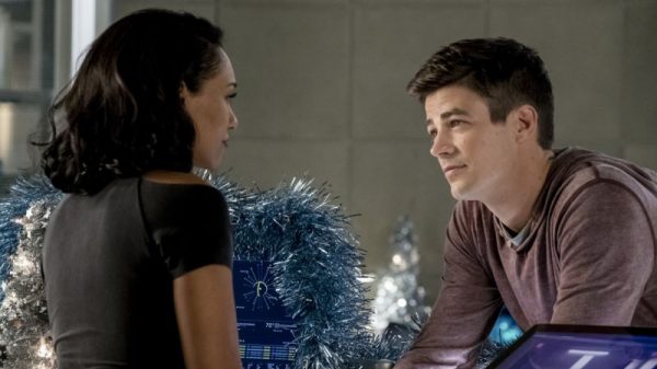 We open with Harry and Cisco decorating (or trying to decorate) STAR Labs for Christmas, though they seem to be having some trouble with the tree and Ralph isn’t any help. Over at the WestAllen loft, Barry and Iris are opening up wedding gifts. Iris throws some shade at Felicity’s crashing of their wedding and Barry chooses to clean up with normal speed, explaining that he doesn’t feel the need to be the Flash around Iris.