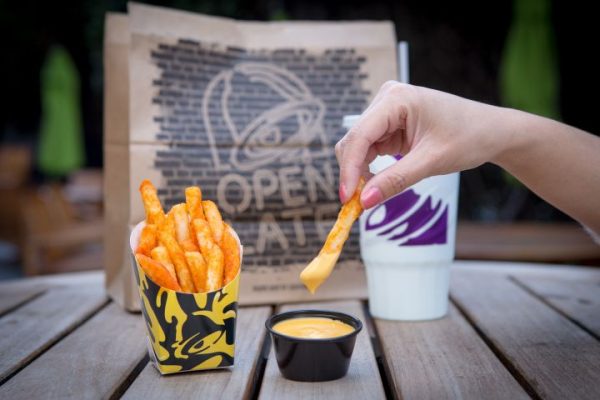 Described in a press release as “the most-anticipated menu item release of the year,” Nacho Fries are crispy French fries dusted with a Mexican seasoning and served with the restaurant’s signature nacho cheese sauce.
